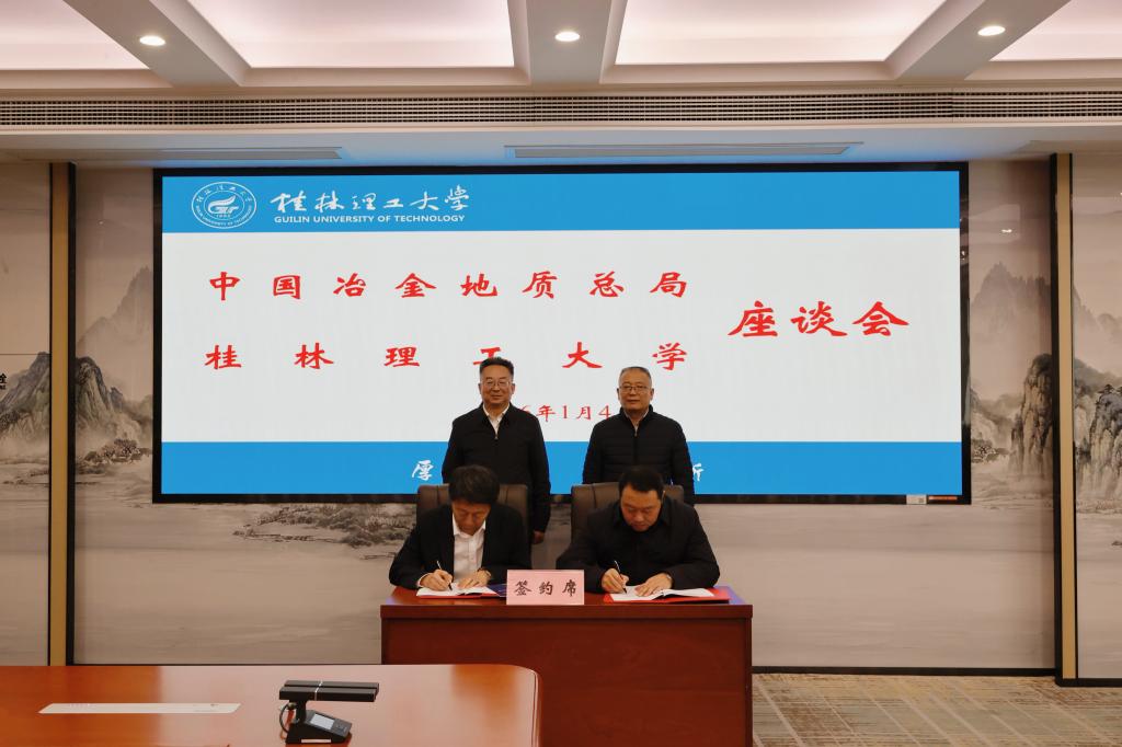 1月4日,中国冶金地质总局党委副书记、局长王文军率队来访我校并签署战略合作框架协议。学校党委书记农毅,党委副书记、校长王敦球热情接待了来访客人。双方在雁山校区开展座谈交流。中国冶金地质总局副局长潘树仁、杨占东出席会议。座谈会由学校党委常委、副校长罗盛锋主持。