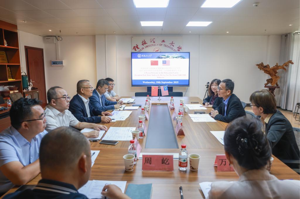 揭牌仪式前,学校校长王敦球在国教园区一号楼A205会议室会见了拉曼理工大学校长拿督英特拉李仕伟教授一行。王敦球对李仕伟一行的到来表示热烈欢迎,并回顾了两校近年来开展的交流与合作。他强调,拉曼理工大学学习中心落地桂林理工大学将为两校在各领域的交流合作提供新的平台,有助于两校合作向更宽领域、更高层次拓展。